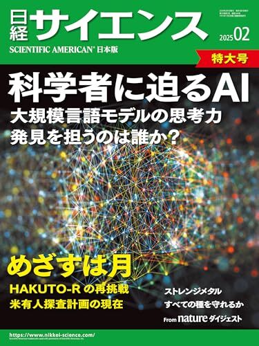 日経サイエンス2025年2月特大号 大規模言語モデル「思考力」で進化 吉川和輝 協力:椎橋徹夫 科学研究を加速する基盤モデル 出村政彬 協力:泰地真弘人(理研) 研究できるAIは科学をどう変えるか? 高木志郎/丸山隆一 日本の「HAKUTO-R」月へリベンジ 林 公…